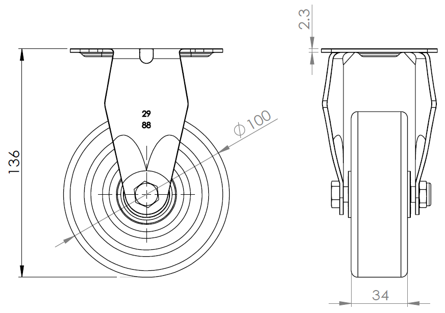 | PU Wheel Diameter × Wheel Width 100 x 34mm |