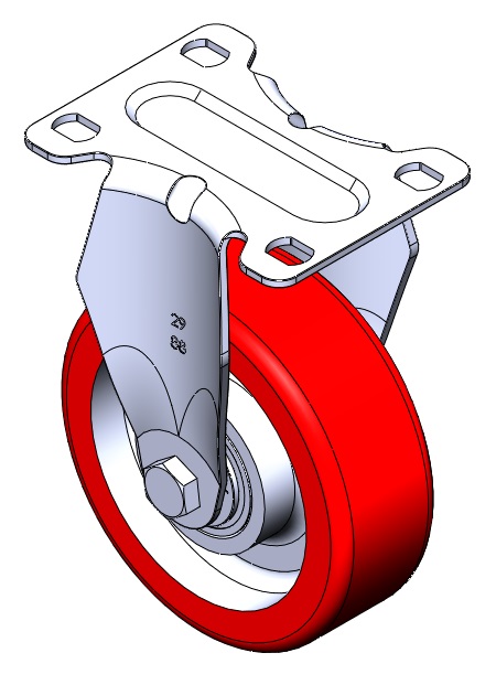 Zine-Plated, Mounting Type - Top Plate. Cast Iron core with High Quality Polyurethane Wheel Tread. Red Cast Iron finish, Bearing with Ball Bearings. |