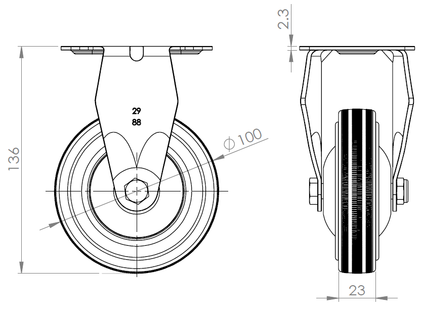 Metric Imperial Wheel Diameter 100mm Wheel Width 23mm |