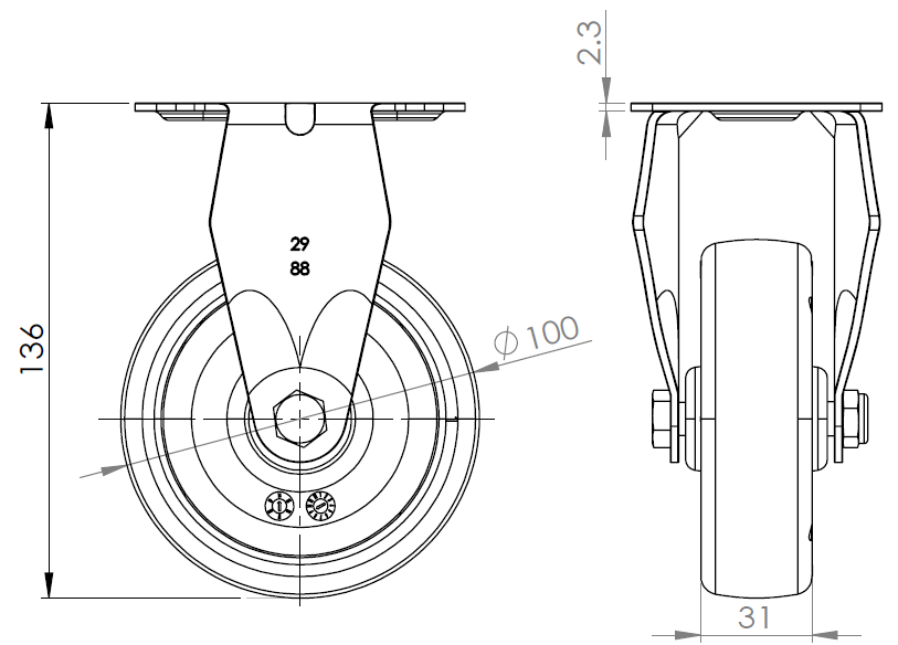 Metric Imperial Wheel Diameter 100mm Wheel Width 31mm |