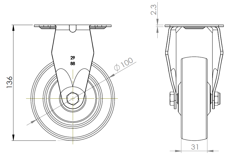 | Rubber Wheel Diameter × Wheel Width 100 x 31mm |