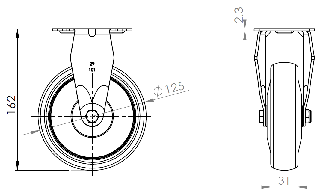 | PPR Wheel Diameter × Wheel Width 125 x 31mm |