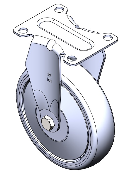 | Rigid Caster with integrally molded Stamping footrest and 72 x 53.5 mm (2-7/8" x 2-1/8") Bolt Hole Spacing. Zine-Plated, Mounting Type - Top Plate. High-Quality Impact-Resistant Polypropylene core with High-Quality Reinforced Polypropylene Rubber (TPR) Wheel Tread. Dark gray, Plain Bearing. |