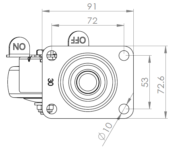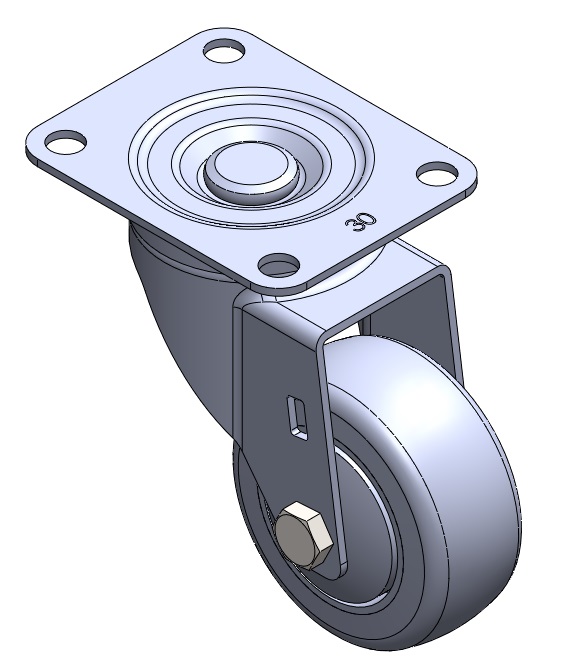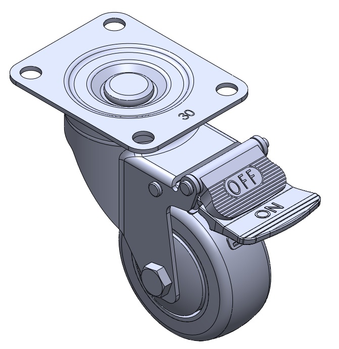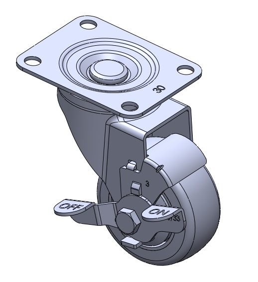 | Casters with Side Brakes and With locking system. Base plate Riveted and Stamping with 72 x 53.5 mm (2-7/8" x 2-1/8") Bolt Hole Spacing. Zine-Plated, Mounting Type - Top Plate. High-Quality Impact-Resistant Polypropylene Wheel Center with High-Quality Reinforced Polypropylene Rubber (TPR) Wheel Tread. Dark gray, Bearing with Ball Bearings. |