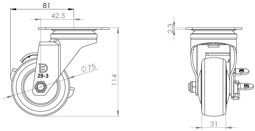 | PPR Wheel Diameter × Wheel Width 75 x 31mm |