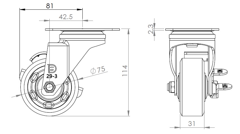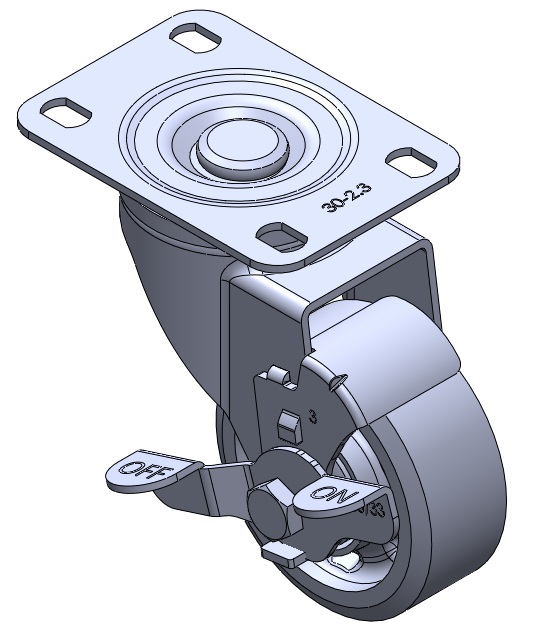 | Casters with Side Brakes and With locking system. Premium Fork with Riveted Fork. Zine-Plated, Mounting Type - Top Plate. Reinforced, impact-resistant polypropylene Wheel Center with High-Quality Reinforced Polypropylene Rubber (TPR) Wheel Tread. Dark gray, Bearing with Ball Bearings. |