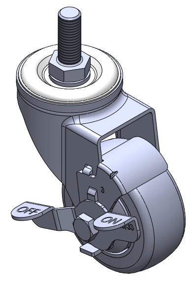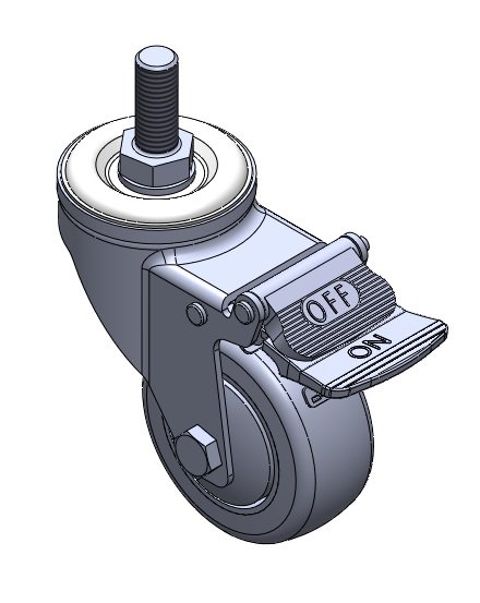 Casters with Total Brakes and With locking system. Threaded Stem Riveted Pressed Fork—1/2-12"