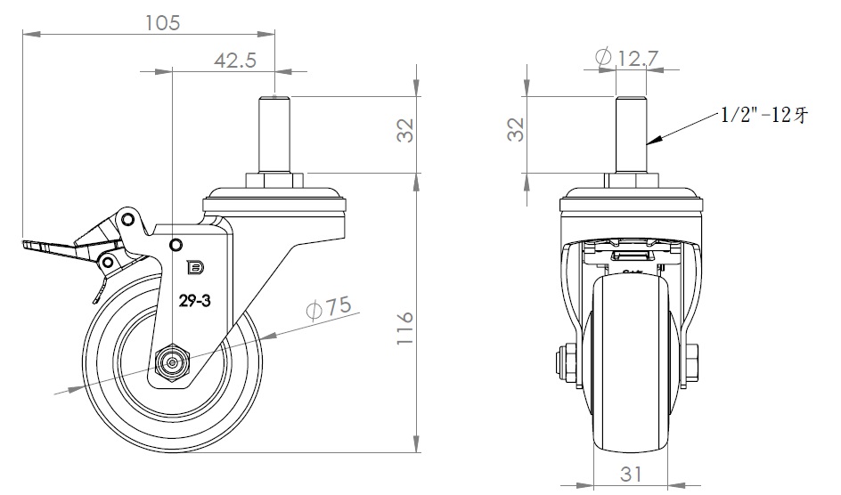 | PPR Wheel Diameter × Wheel Width 75 x 31mm |