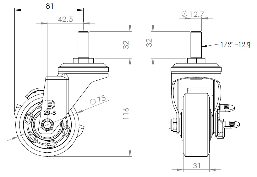 | W Resolute Wheel Diameter × Wheel Width 75 x 31mm |