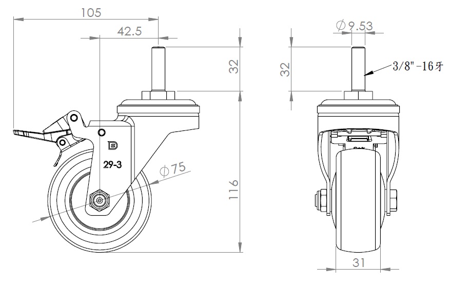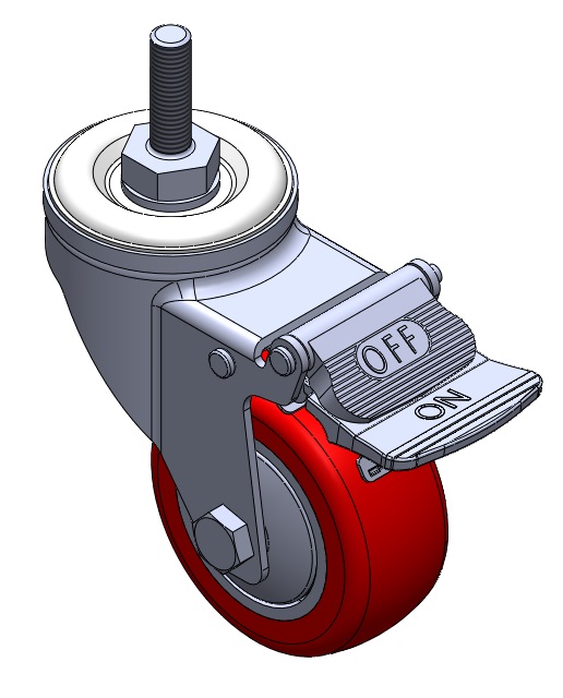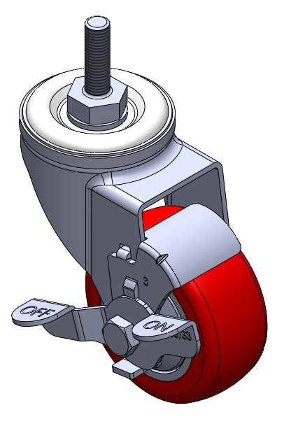 Casters with Total Brakes and With locking system. Threaded Stem Riveted Pressed Fork—3/8-16.
