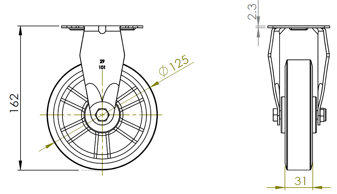 | W Resolute Wheel Diameter × Wheel Width 125 x 31mm |