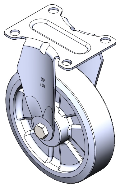 | Rigid Caster with integrally molded Stamping footrest and 72 x 53.5 mm (2-7/8" x 2-1/8") Bolt Hole Spacing. Zine-Plated, Mounting Type - Top Plate. Reinforced, impact-resistant polypropylene Wheel Center with High-Quality Reinforced Polypropylene Rubber (TPR) Wheel Tread. Dark gray, Ball Bearings. |