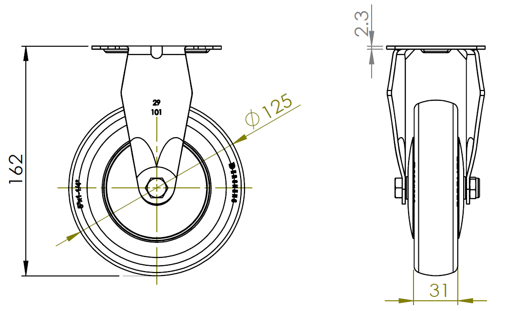 | PPR (S) Wheel Diameter × Wheel Width 125 x 31mm |