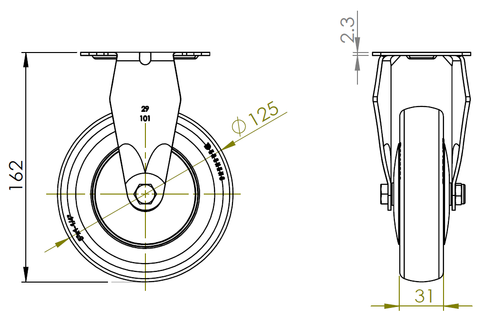 | PPR E-conductive Wheel Diameter × Wheel Width 125 x 31mm |