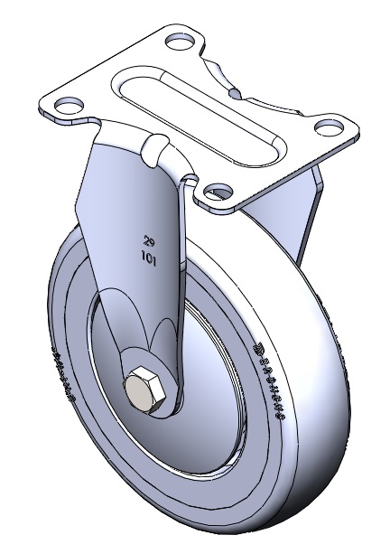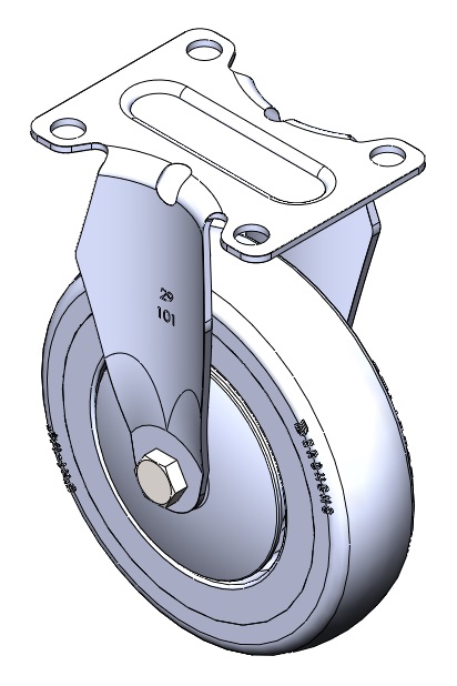| Rigid Caster with integrally molded Stamping footrest and 72 x 53.5 mm (2-7/8" x 2-1/8") Bolt Hole Spacing. Zine-Plated, Mounting Type - Top Plate. High-Quality Impact-Resistant Polypropylene core with High-Quality Reinforced Polypropylene Rubber (TPR) Wheel Tread. Dark gray, Ball Bearings. |