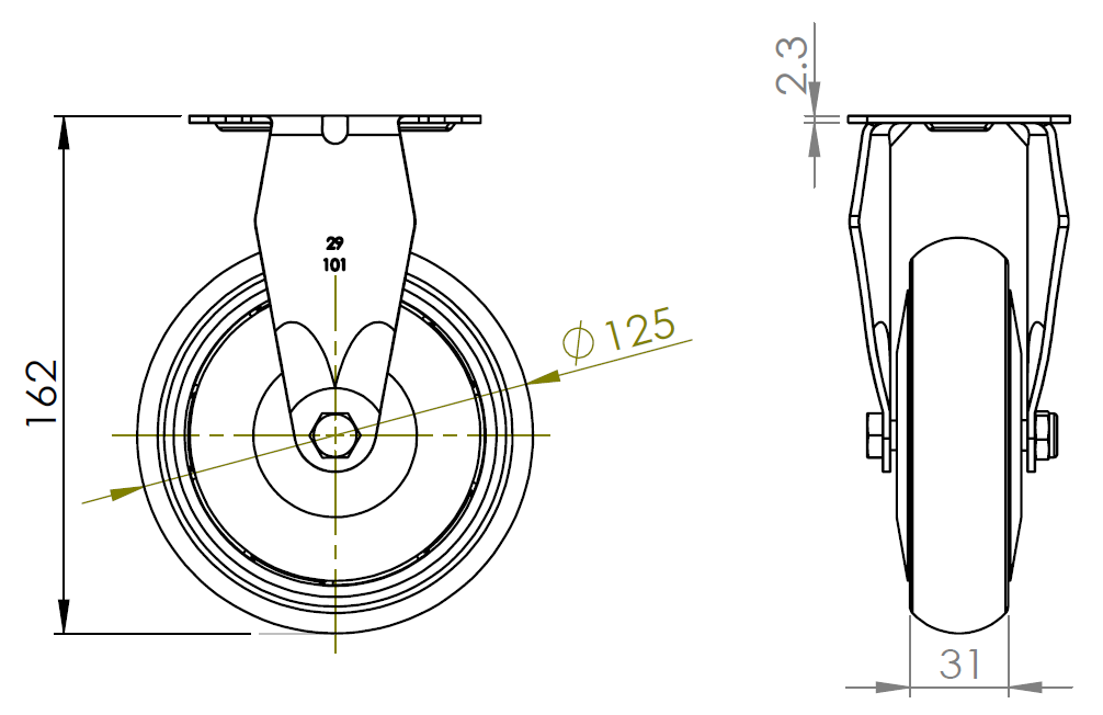 | Wheel tread: high quality polyurethane Wheel: Iron core/cast iron core Drawings are for reference only and may differ from the product |