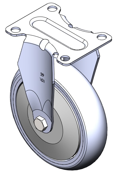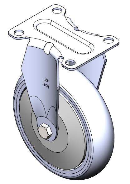 Rigid Caster with integrally molded, Stamping footrest and 72 x 53.5 mm (2-7/8" x 2-1/8") Bolt Hole Spacing.
