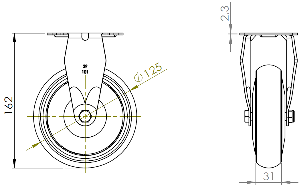 | AQPU (grey) Wheel Diameter × Wheel Width 125 x 31mm |