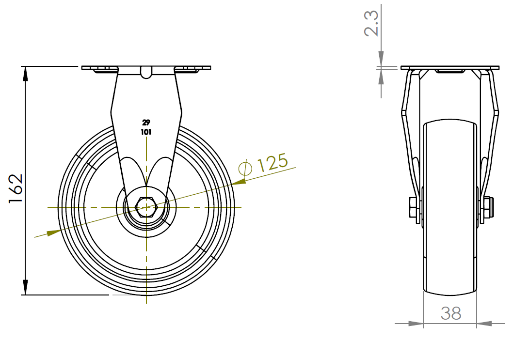 | Nylon Wheel Diameter × Wheel Width 125 x 38mm |