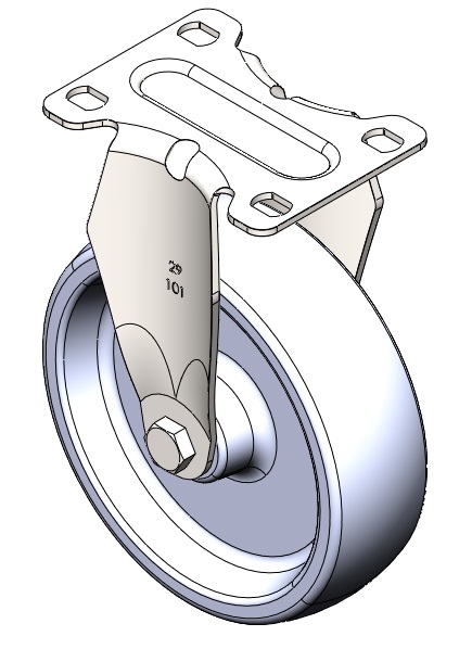 | Rigid Caster with Stamping Fabricated Caster Fork and 75 x 45 mm (3" x 1-3/4") Bolt Hole Spacing. Zine-Plated, Mounting Type - Top Plate. Reinforced Polypropylene plastic core and Wheel Tread. Bearing - Plain Bearing. |