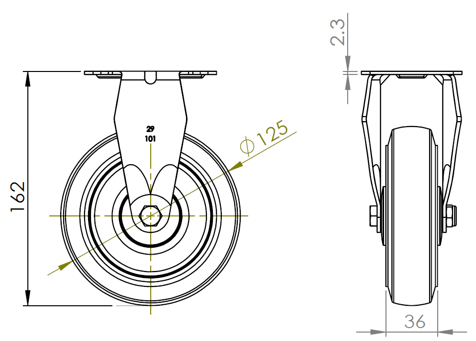 | Resolute Wheel Diameter x Wheel Width 125 x 36mm |