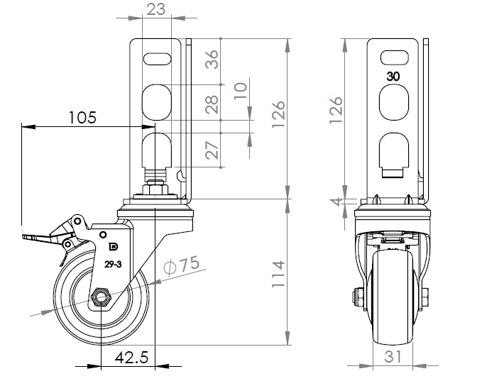 | PPR Wheel Diameter × Wheel Width 75 x 31mm |