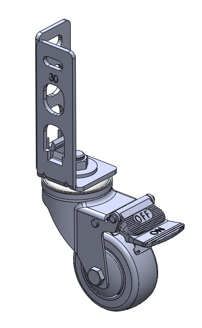 | Casters with Total Brakes and a With locking system. Zine-Plated, angle iron Mounting Type - Top Plate High-Quality Impact-Resistant Polypropylene Wheel Center, High-Quality Reinforced Polypropylene Rubber (TPR) Wheel Tread Dark gray, Bearing—Ball Bearings |