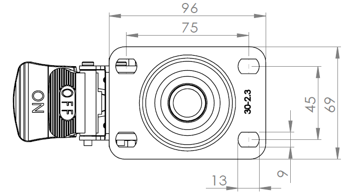 Total Brake locking system. Top Plate with Riveted, Stamping Fork and 75 x 45 mm (3" x 1-3/4") Bolt Hole Spacing.