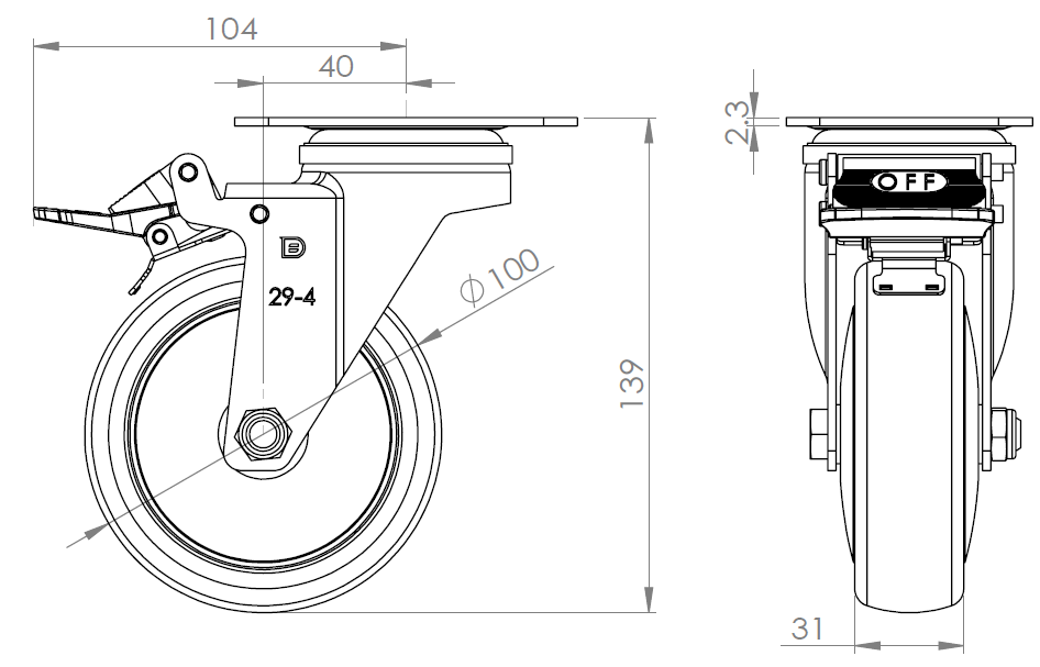 | PPR Wheel Diameter × Wheel Width 100 x 31mm |