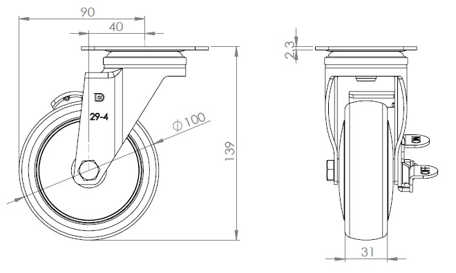 Metric Imperial Wheel Diameter 100mm Wheel Width 31mm |