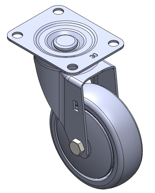 Zine-Plated, Mounting Type - Top Plate. High-Quality Impact-Resistant Polypropylene Wheel Center with High-Quality Reinforced Polypropylene Rubber (TPR) Wheel Tread. Dark gray, Plain Bearings. |