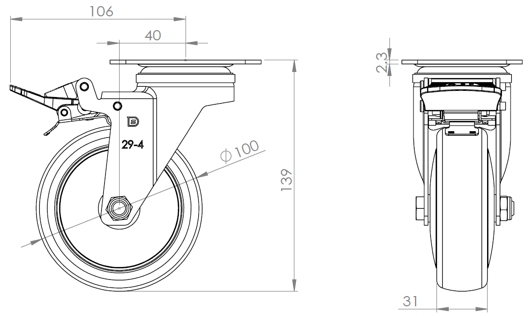 Metric Imperial Wheel Diameter 100mm Wheel Width 31mm |