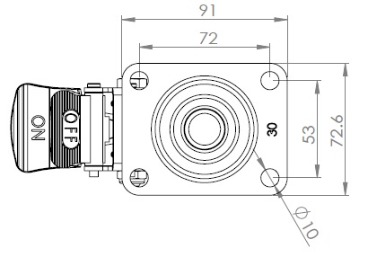 Plate Size 91 x 72.6mm Bolt Hole Spacing 72 x 53mm Plate Hole 10mm Offset 40mm Swivel Interference 212mm Overall Height 139mm Swivel Radius 106mm Hardness Of Tread 82±5° Shore A Load Capacity (Dynamic) 80kgs |