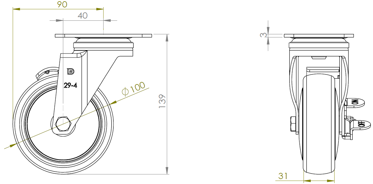| PPR Wheel Diameter × Wheel Width 100 x 31mm |