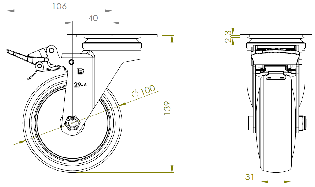 | PPR Wheel Diameter × Wheel Width 100 x 31mm |