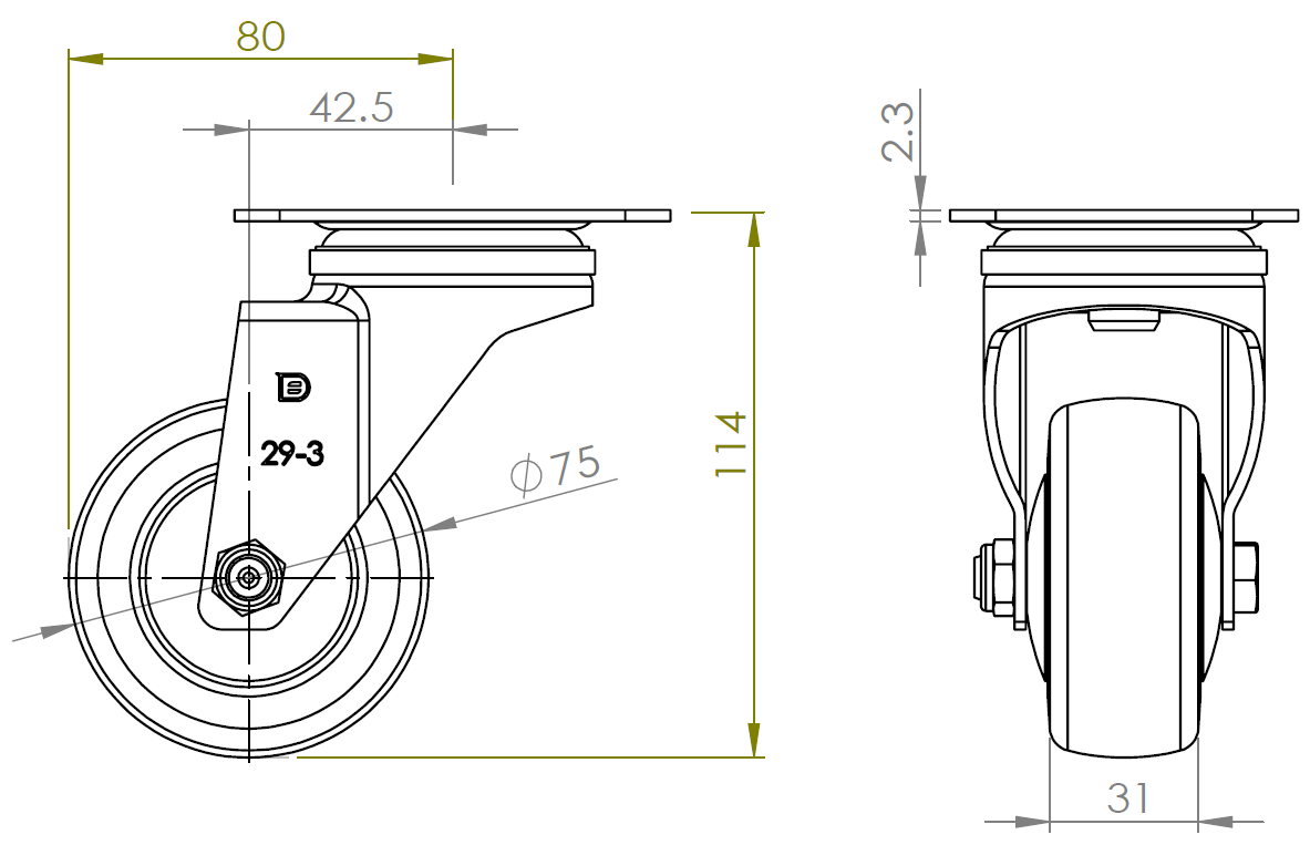 | PPR Wheel Diameter × Wheel Width 75 x 31mm |