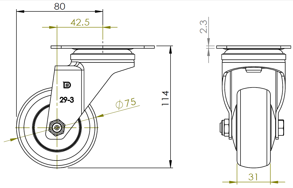 | Resolute Wheel Diameter × Wheel Width 75 x 31mm |