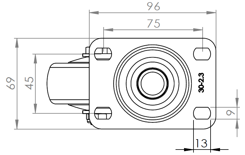Swivel Caster with Riveted Fork and Stamping Fork—75 x 45 mm (3" x 1-3/4") Bolt Hole Spacing