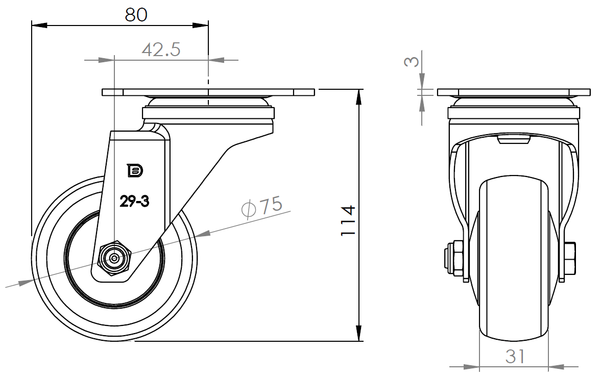 Zine-Plated, Top Plate (3T) Mounting Type system High-Quality Impact-Resistant Polypropylene core with High-Quality Reinforced Polypropylene Rubber (TPR) Wheel Tread Dark gray, Bearing—Ball Bearings. |