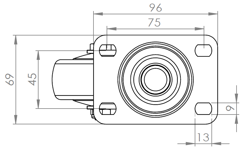 Swivel Caster with Riveted Fork and Stamping Fork—75 x 45 mm (3" x 1-3/4") Bolt Hole Spacing