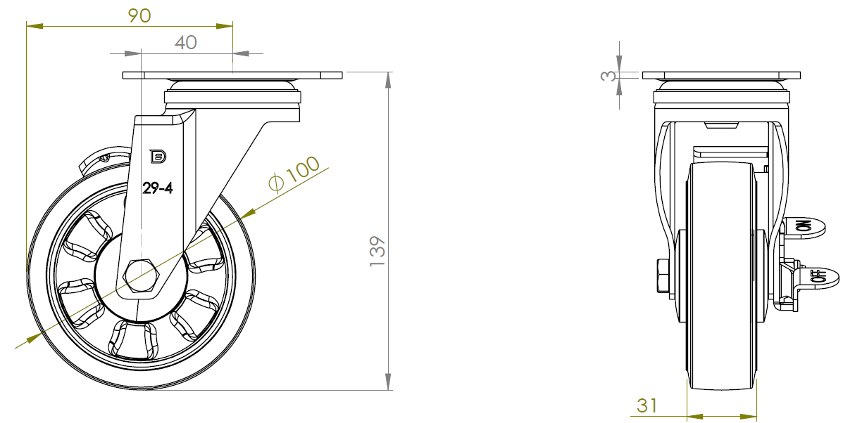 W Resolute Wheel Diameter × Wheel Width 100 x 31mm |