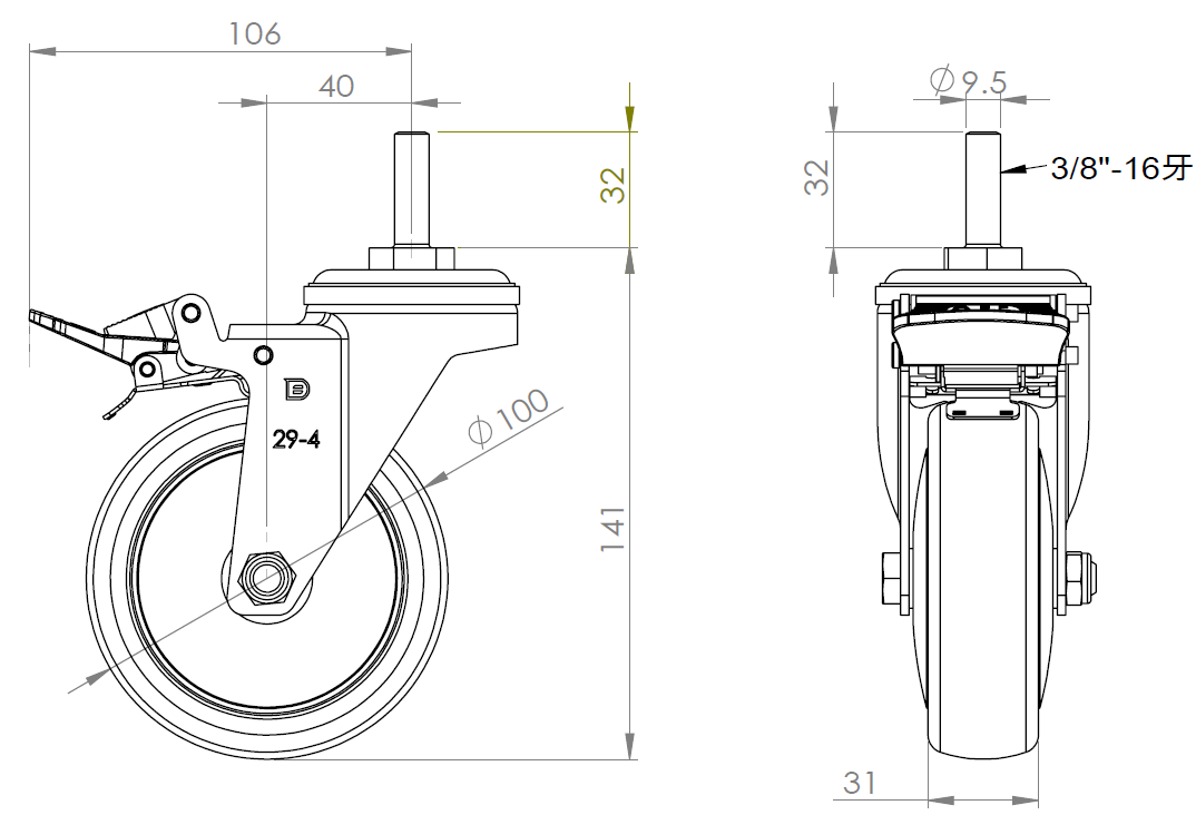 | PPR Wheel Diameter × Wheel Width 100 x 31mm |