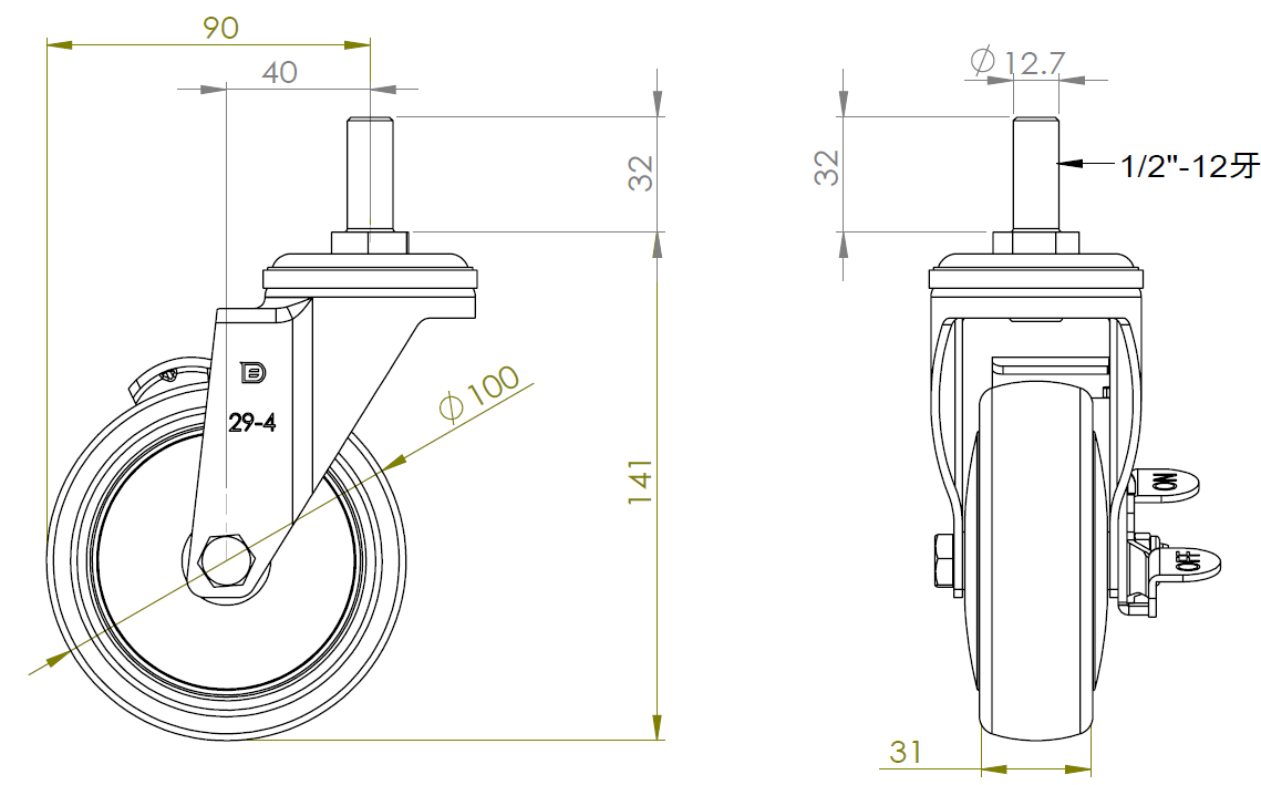 | PPR Wheel Diameter × Wheel Width 100 x 31mm |
