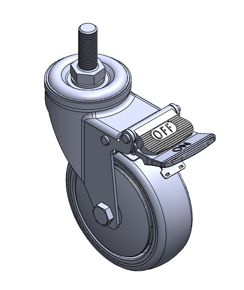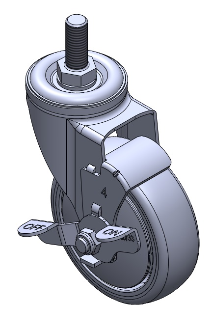 | Casters with Side Brakes and With locking system. Threaded Stem Riveted Pressed Fork - 1/2-12 threads Zine-Plated, Mounting Type - Threaded Stem High-Quality Impact-Resistant Polypropylene Wheel Center, High-Quality Reinforced Polypropylene Rubber (TPR) Wheel Tread Dark gray, Bearing - Ball Bearings |
