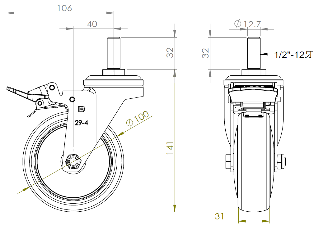 | PPR Wheel Diameter × Wheel Width 100 x 31mm |