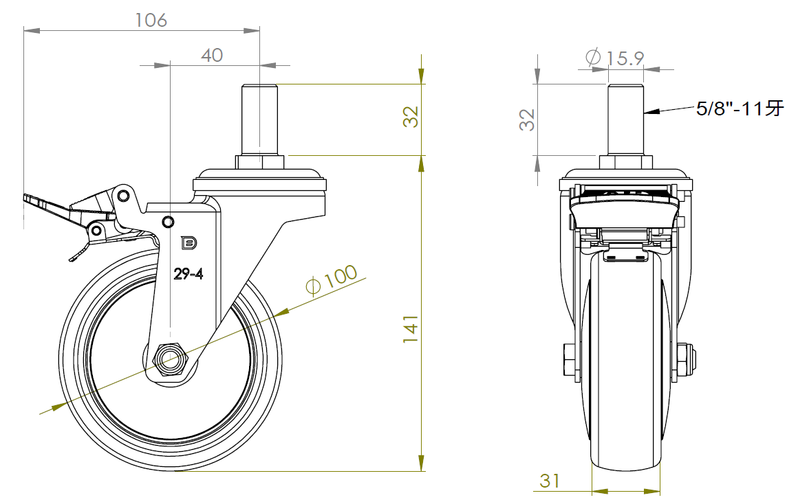 | PPR Wheel Diameter × Wheel Width 100 x 31mm |