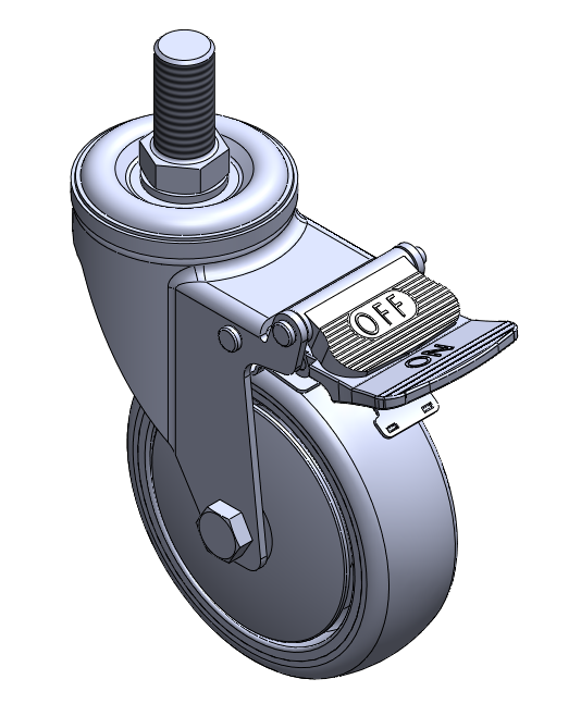 | Casters with Total Brakes and With locking system. Riveted Stamping Fork with 5/8-11 threads Zine-Plated, Mounting Type - Threaded Stem High-Quality Impact-Resistant Polypropylene Wheel Center, High-Quality Reinforced Polypropylene Rubber (TPR) Wheel Tread Dark gray, Bearing—Ball Bearings |
