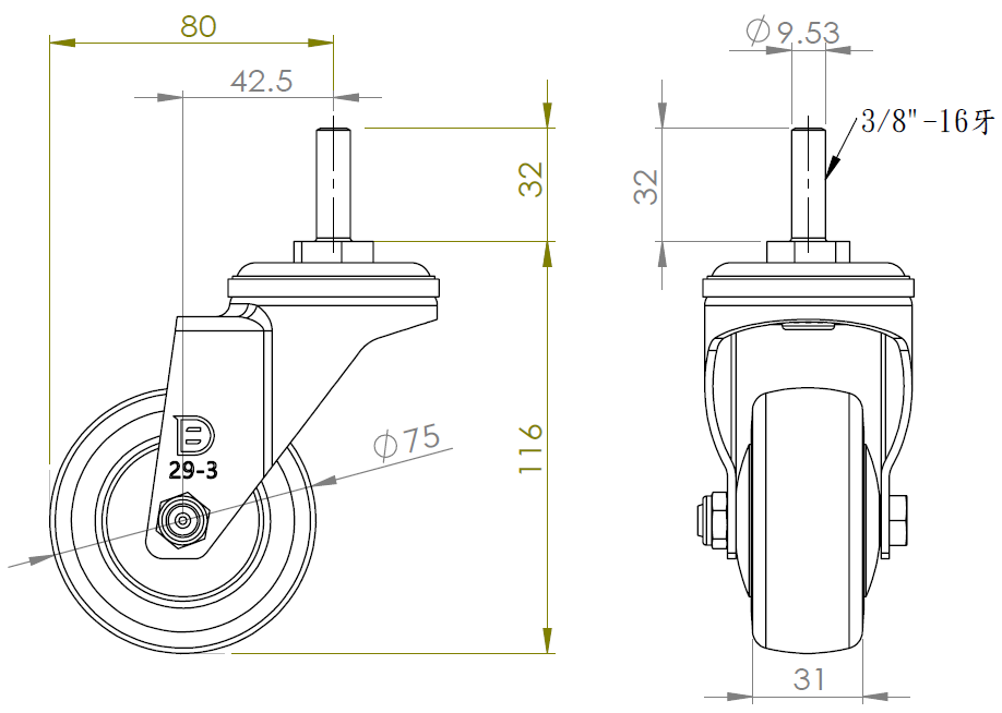 | PPR Wheel Diameter × Wheel Width 75 x 31mm |