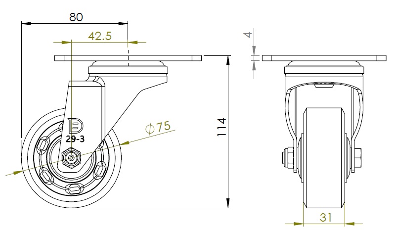 | W Resolute Wheel Diameter × Wheel Width 75 x 31mm |