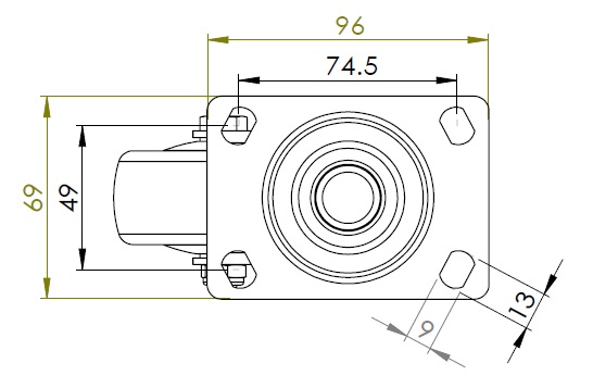 Swivel Caster with Riveted Fork and Stamping Fork with angled holes.